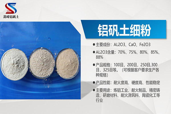 高鋁細粉常用規(guī)格:100目,200目,250目,300目,325目(也可按照客戶要求定制加工)